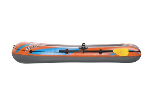 Wykonany z trwałego i wytrzymałego PVC, posiada trzy niezależne komory powietrzne. Ponadto wokół kajaku umocowana jest linka asekuracyjna.