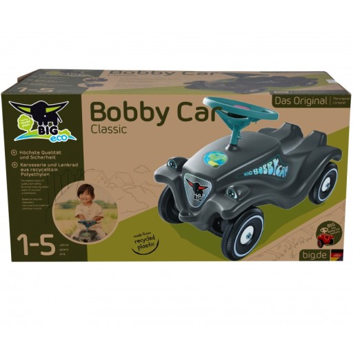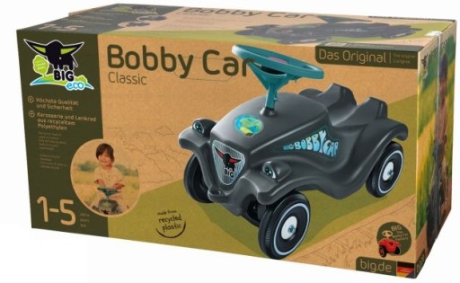 Klasyka zdefiniowana na nowo! Topowy produkt renomowanej marki BIG. Ergonomiczny, solidny, efektowny i ekologiczny Jeździk New Bobby Car z dźwiękiem. Samochodzik jest w unikatowym szarym kolorze w nowoczesnym stylu. Wyposażony jest w kierownicę z klaksonem, co daje dziecku większe wrażenia podczas zabawy. Jeździk posiada wyprofilowane siedzenie, pozwalające na zabawę w dwóch pozycjach - siedząc lub klęcząc. Nadwozie, kierownica i koła Big Bobby Car Classic - Eco są wykonane z tworzywa sztucznego pochodzącego z recyklingu (polietylenu pochodzącego z recyklingu)!