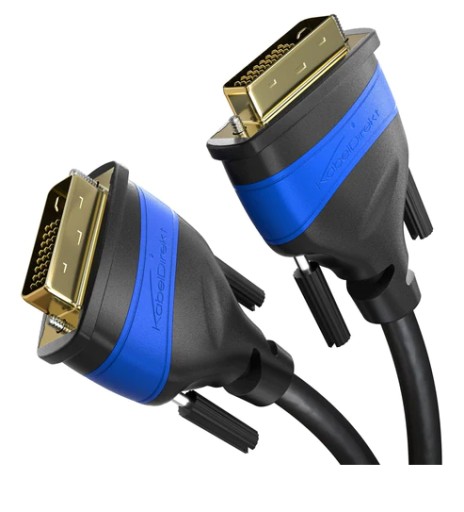 - Wysokiej jakości przewód DVI-D Dual Link o długości 1,85metra, ekranowany, owalny, z śrubami mocującymi, w kolorze czarno niebieskim.