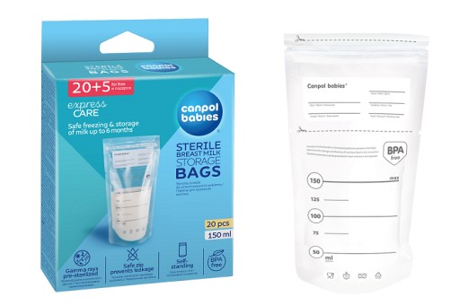Torebki do przechowywania pokarmu Canpol babies służą do bezpiecznego przechowywania mleka w lodówce lub zamrażalniku aż do 6 miesięcy. Mleko matki powinno być przechowywane w specjalnych sterylnych torebkach, dlatego torebki do przechowywania pokarmu Canpol babies zostały poddane dokładnej sterylizacji, co zapewnia utrzymanie wysokiej jakości pokarmu i mogą być użyte natychmiast po wyjęciu z pudełka.