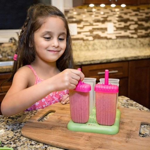 Po przygotowaniu masy wystarczy wypełnić wszystkie formy do pełna i włożyć patyczki do środka. Następnie umieścić foremki na stojaku dołączonym do zestawu i umieść wszystko w zamrażarce. Odczekaj kilka godzin aż lody porządnie się zamrożą i cieszyć się pyszną domową kompozycją z całą rodziną.