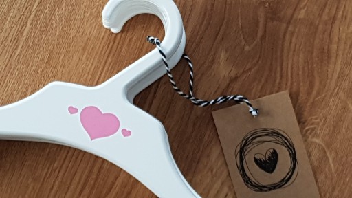 Zestaw wieszaków niemowlęcych w kolorze białym z różowymi sercami