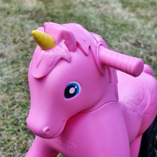 - - jeździk biegowy w kształcie różowego jednorożca,
