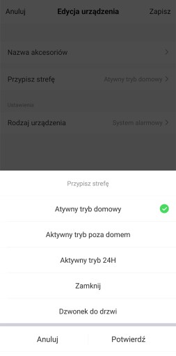 - Sygnalizacja alarmu: Sygnał do centrali alarmowej