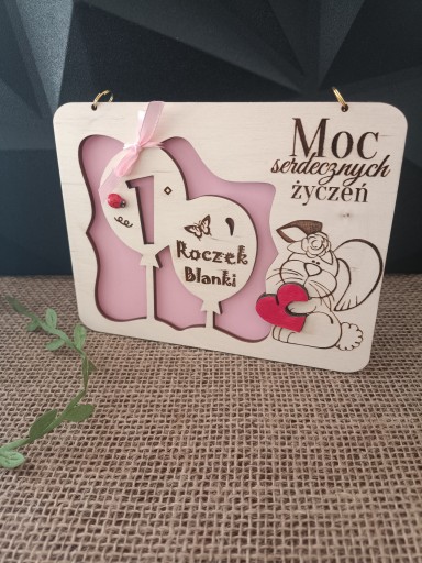 Kartka drewniana na roczek lub kolejne urodzinki - oryginalna pamiątka, dekoracja...