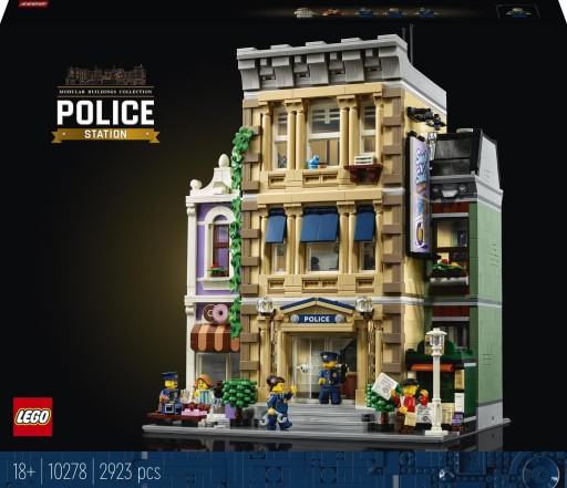 Wejdź do pysznego świata przekrętów, pojmań i pączków dzięki zestawowi 10278 LEGO® Posterunek policji. Składanie trzykondygnacyjnego modelu gwarantuje wiele godzin wciągającej zabawy. Zobacz, jak zbudowane z klocków schody wznoszą się od parteru aż na najwyższe piętro. Jeśli chcesz, możesz też zajrzeć do środka modelu, z łatwością odczepiając każdą kondygnację. W przerwie od policyjnych obowiązków wpadnij po coś słodkiego do sklepu z pączkami lub weź coś do czytania z kiosku z gazetami.Niesamowite szczegółyTen imponujący zestaw jest pełen ukrytych funkcji i sprytnych rozwiązań konstrukcyjnych. Na posterunku znajdziesz wszystko, czego potrzeba do rozwiązania zagadki: szafkę na dowody, celę więzienną, pokój przesłuchań oraz tablicę spraw kryminalnych z czerwonymi liniami łączącymi poszlaki. Zestaw zawiera także kilka nowych elementów, które na pewno spodobają się fanom LEGO.Projekt konstrukcyjny dla CiebieZestaw LEGO Posterunek policji jest częścią kreatywnej kolekcji budynków modułowych. Odpręż się, składając ten wymagający model samodzielnie lub z rodziną i zbuduj przyciągającą wzrok ozdobę, która będzie doskonale pasować do innych budynków modułowych LEGO.