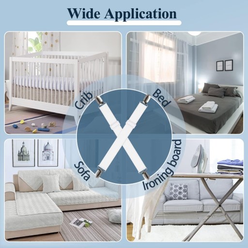 Szerokie elastyczne paski są zbudowane tak, aby wytrzymać silne napięcie, utrzymać prześcieradła na miejscu i schludnie, dopasować do pokrowca na materac łóżeczka podwójnego, pełnego, typu queen-size, king-size i Cal king size.