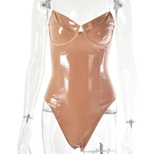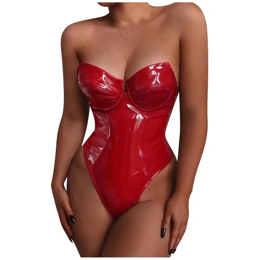 Women Sexy Bodycon Bodysuit Zipper PU Leather Jumpsuit Ladies Latex Strapless Bodysuits Rompers Body Mujer Erotic Lingerie 4XL