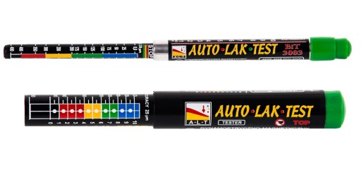 Tester AUTO-LAK-TEST TOP i Bit 3003 z magnesem płaskim pokrytym teflonem jest produkowany przez Naszą firmę i jest całkowicie naszym produktem . Nasze testery są owocem kilkuletnich prób i badań , aby były dokładne i bezawaryjne przez wiele lat . Były poddawane wielokrotnym modyfikacjom i zmianom. Prace nad udoskonalaniem naszych mierników trwają do dzisiaj i każdy nowy model ma udoskonalenia niewidoczne na pierwszy rzut oka, każdy klient w Polsce otrzymuje taki sam produkt jaki wysyłamy na eksport . Każdy tester jest kalibrowany i sprawdzany elektronicznie podczas produkcji . Posiada kolorową skalę w mikronach naniesioną na zewnętrzną część testera , która bardzo ułatwia odczyt grubości lakieru lub szpachli , nawet tym , którzy pierwszy raz mają do czynienia ze sprawdzaniem samochodu .
