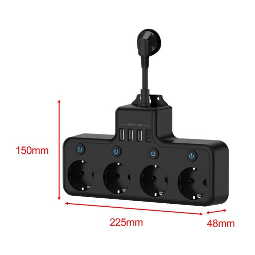 [Funkcja]: Wtyczka EU zasila listwę z 4 gniazdami, wiele gniazd z wtyczką EU, co jest wygodne w użyciu.