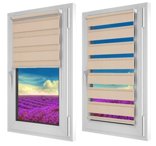 Roleta Mini Dzień Noc 4Dekor to dwufunkcyjna roleta z płynną regulacją poziomu zaciemnienia. System ułożonych naprzemiennie transparentnych pasów siateczki i pasów nieprześwitującej tkaniny pozwala całkowicie zasłonić okno lub wprowadzić do wnętrza subtelne światło. Mechanizm rolety umożliwia dowolną regulację dopływu światła do pomieszczenia. Roletę można także zupełnie podnieść, dzięki czemu pomieszczenie będzie bardzo jasne. Montaż rolety jest łatwy i bezinwazyjny – nie wymaga wiercenia ani użycia narzędzi.