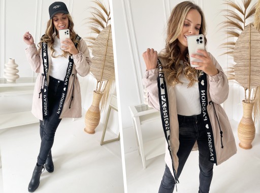 - Wzdłuż zamka i kaptura dzianinowe wykończenie.