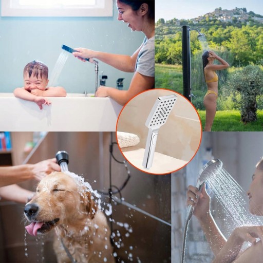 ✅ Słuchawka Prysznicowa Kwadratowa 3-Funkcyjna - Chrom lustrzana EKO