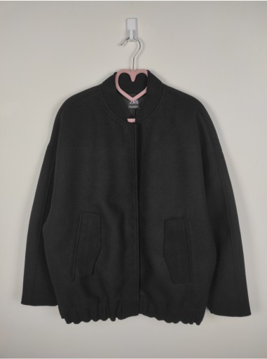 Kurtka typu bomberka o szerokim kroju. Okrągły dekolt. Długi rękaw. Kieszenie z klapkami z przodu. Wykończenie w gumkę u dołu. Zapięcie na zatrzaski z przodu.