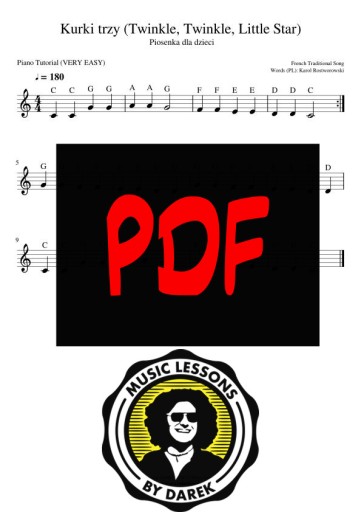 Zbiór utworów dla najmłodszych w MEGA ŁATWEJ aranżacji na pianino, fortepian czy keyboard w formie NUT LITEROWYCH. 12 piosenek z kanału Music Lessons by Darek w najprostszych tonacjach (praktycznie cały czas C-dur i G-dur - czyli gramy głównie na białych klawiszach). Tak podobierałem nuty, by praktycznie nie wychodziły poza obszar pięciolinii, tak by łatwiej młodym adeptom gry na instrumentach klawiszowych odczytywało się nuty!