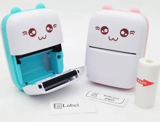 МИНИ-ТЕРМОПРИНТЕР DRUKUŚ МИНИ-КОТ ДЛЯ НАКЛЕЙКИ ФОТОГРАФИЙ + 11 ШТ. РОЛИКОВ
