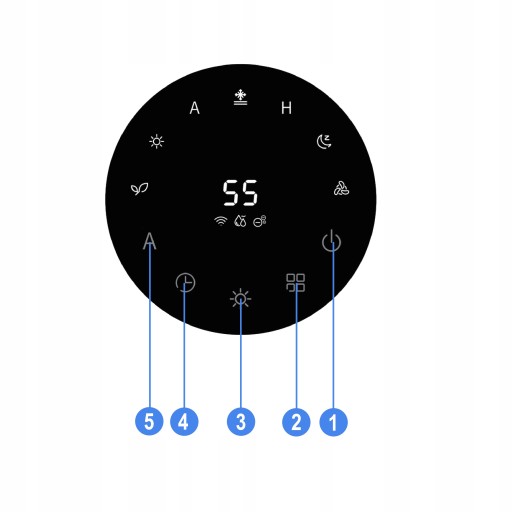 1. Tryb nocnej lampki w którym front urządzenia podświetlany jest białym światłem.