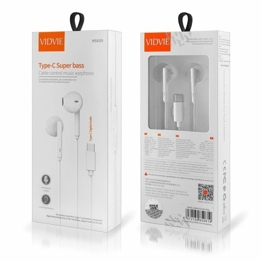 SŁUCHAWKI Z KABLEM VIDVIE HS659 TYPE-C BIAŁY