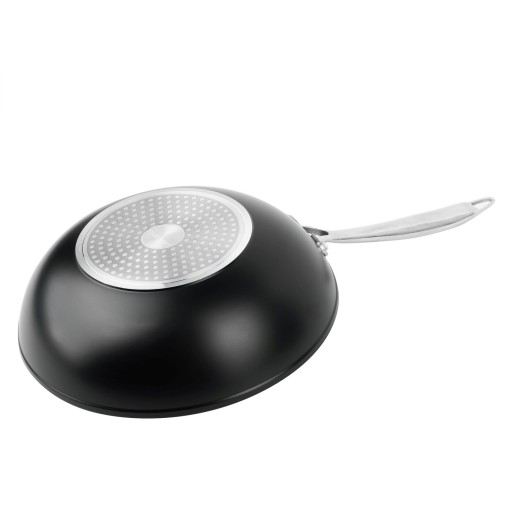 Pozostałe informacje: - wok aluminiowy kuty pokryty dwuwarstwową powłoką Aerolite, - powłoka o chropowatej teksturze z mieniącymi się drobinkami, - wysoka odporność na ścieranie i zarysowania, - 50000 cykli ścierania, - grubość powłoki 50-65 um, - free PFOA, - uchwyt ze stali nierdzewnej nitowany, - wysokość rantu: 8 cm