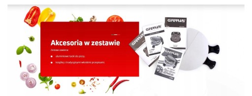 - Akcesoria: aluminiowe tacki na pizzę Ø 28 cm