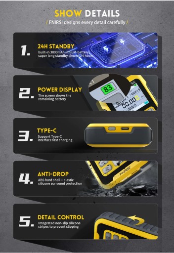 Kompaktowy i wszechstronny generator sygnałów FNIRSI SG-004A PT100 Rezystancja termopary oferuje precyzyjny pomiar, który pomaga w realizacji różnorodnych zadań. Wyposażony w wyświetlacz TFT-LCD o przekątnej 2,4 cala i podświetleniu, zapewnia doskonałą czytelność wyników pomiarów. Technologia odporna na upadki, zastosowana w obudowie ABS z otoczką silikonową, gwarantuje solidną ochronę urządzenia. Generator posiada wbudowaną baterię litową o pojemności 3000 mAh, która umożliwia działanie w trybie czuwania przez 24 godziny. Zasilanie odbywa się za pomocą interfejsu ładowania typu C.