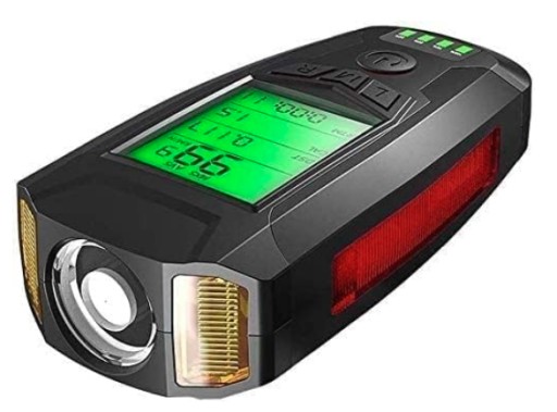 Lampa rowerowa z miernikiem prędkości, klaksonem oraz alarmem antykradzieżowym. Urządzenie podnosi bezpieczeństwo rowerzystów, a także pozwala kontrolować parametry jazdy takie jak aktualna prędkość, przebyty dystans itp.