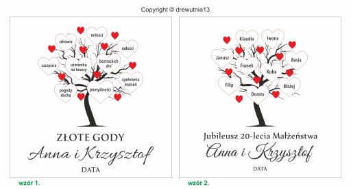 Jeśli wybrałeś wzór nr 1 możesz podać swoje własne życzenia do serduszek lub wykonamy jak w przykładzie.