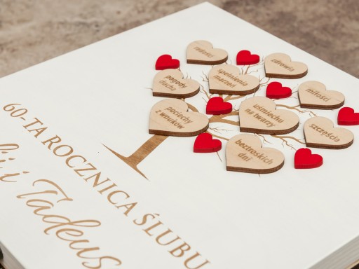 - na wierzchu pudełka grawer w formie drzewka oraz życzenia w środku - do wyboru podane na końcu aukcji