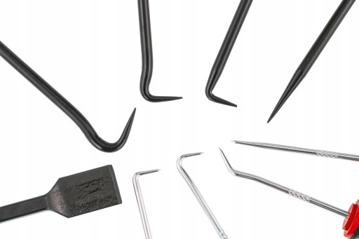 - Haczyki i szpikulce są idealne do pomocy w wyciąganiu/podnoszeniu pierścieni zabezpieczających, oringów, symeringów, zawleczek itp.