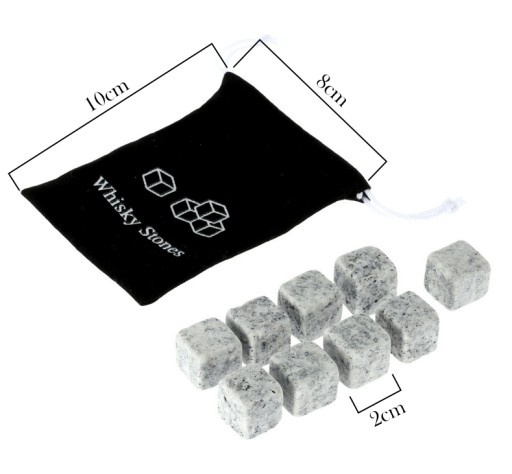 9 kamieni do whisky z granitu w miękkim woreczku