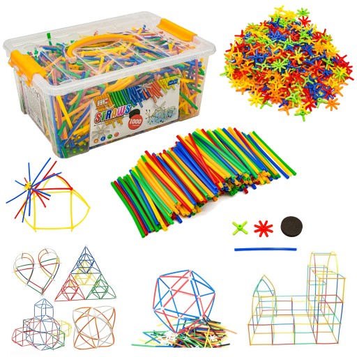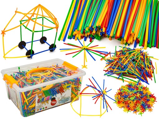 ⭐️ ZESTAW DUŻE KLOCKI Konstrukcyjne dla Dzieci Słomki Rurki Patyczki 1000 el.