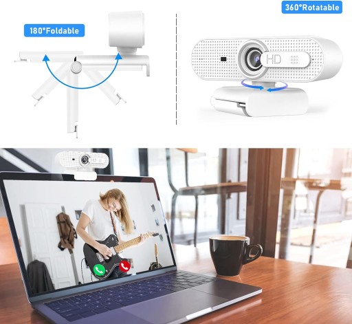 KAMERA INTERNETOWA KOMPUTEROWA USB 1080P BIAŁA AUTOFOKUS MIKROFON +STATYW