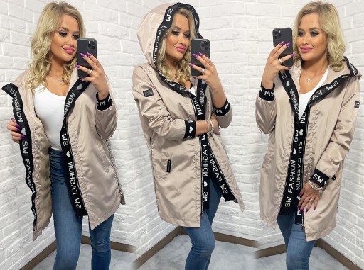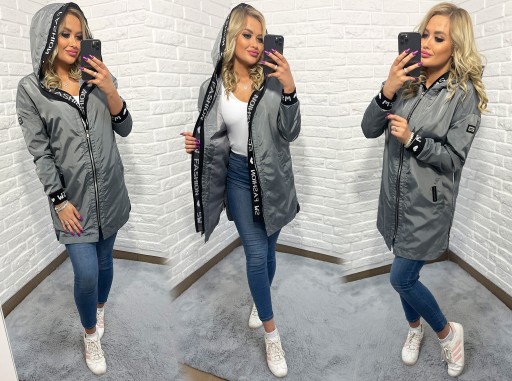 - Najmodniejsze, dzianinowe wykończenie wzdłuż zamka, kaptura i rękawów.