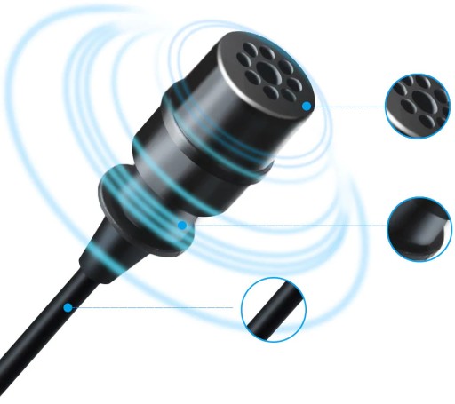 - Uniwersalny mikrofon krawatowy do urządzeń jack 3.5mm.
