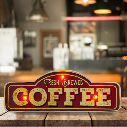 Znak Metalowy RETRO LED Fresh Brewed Coffee Forever Light
