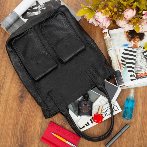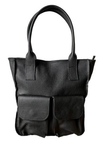 CZARNA TOREBKA SKÓRA NATURALNA SHOPPER SKÓRZANA TORBA A4 KIESZONKI XL