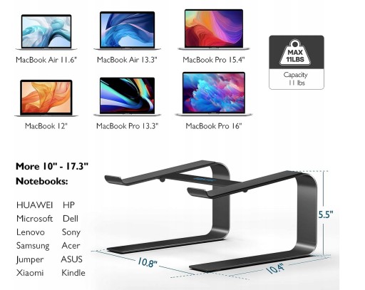 - Uniwersalna kompatybilność: Ten uniwersalny stojak na komputer nadaje się do wszystkich laptopów 10-17,3 cala. Jest kompatybilny z MacBook, MacBook Pro/Air, Asus, Sony, Dell, HP, Toshiba, Lenovo, itp., o maksymalnej nośności 5 kg