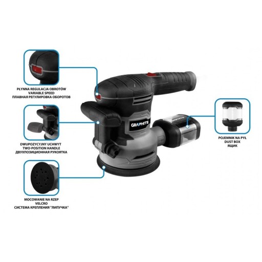 GRAPHITE SZLIFIERKA MIMOŚRODOWA 125/150MM 450W, WALIZKA