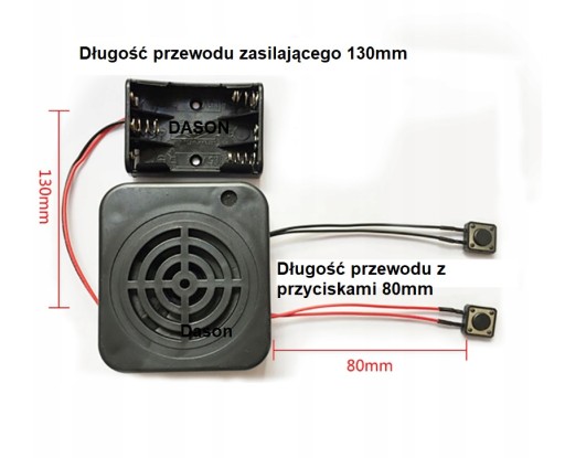 Przycisk z czerwonym przewodem to przycisk nagrywania, a przycisk z czarnym przewodem to przycisk odtwarzania.