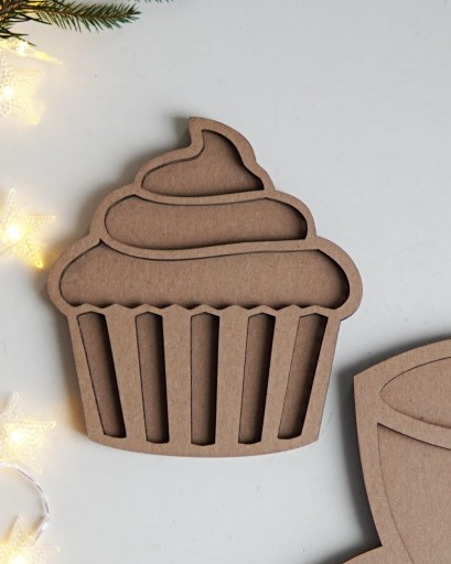 Sensokarton w kształcie babeczki o wymiarach 17cm x 16cm, grubość 13mm.