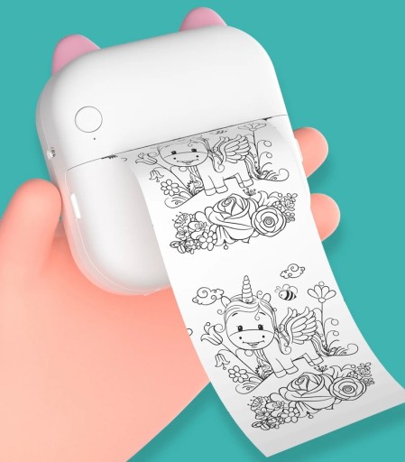 DRUKUŚ Mini Drukarka Termiczna Notatki Zdjęcia Dzieci ORYGINALNY + 11 ROLEK