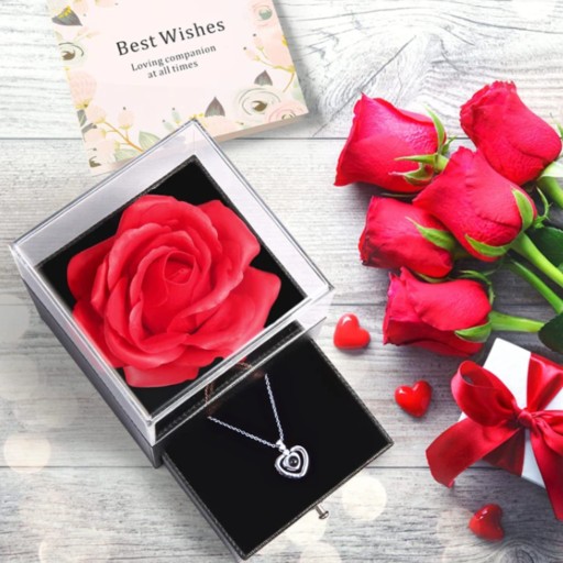 ✅Naszyjnik: Subtelny naszyjnik, uzupełniający elegancję prezentu, tworzący harmonijną całość z kwiatem i dodając niezwykłego wdzięku.