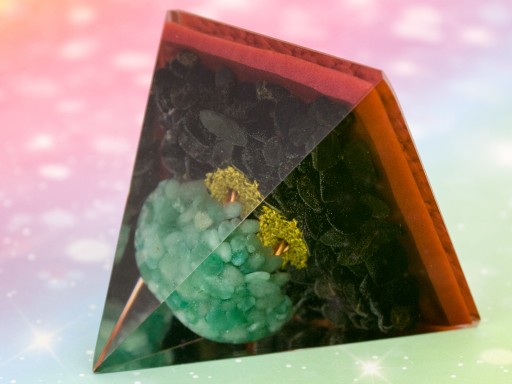 Ta orgonitowa piramida, poza swoim silnie pozytywnym, uzdrawiającym i uspokajającym działaniem wygląda też pięknie dzięki zatopionym wewnątrz kryształom, minerałom. Poza poprawą samopoczucia i pozytywnym oddziaływaniem na energię życiową osób w jej otoczeniu stanowi też przepiękny element dekoracyjny – kolorowy, niepowtarzalny i estetyczny.