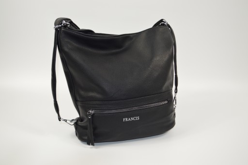 - -jedną komorę zasuwaną, a w niej kieszeń przez całość torebki, mała kieszonka zasuwana i dwie otwarte kieszonki