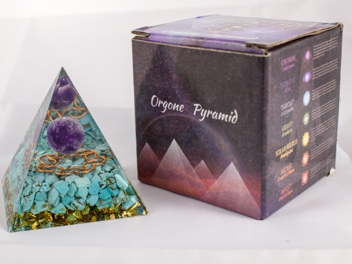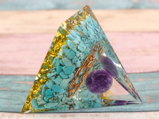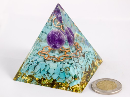 PIRAMIDKA Z ŻYWICY ORGONIT TURKUS AMETYST OCZYSZCZANIE CZAKR BIOENERGIA 6cm