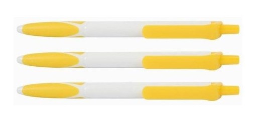 Plastikowy długopis, automatyczny, ergonomiczna obudowa z uchwytem antypoślizgowym, technologia double injection guma+plastik, wymienny wkład F-411, niebieski kolor tuszu, grubość linii 0,7 mm, 50 sztuk w paczce.
