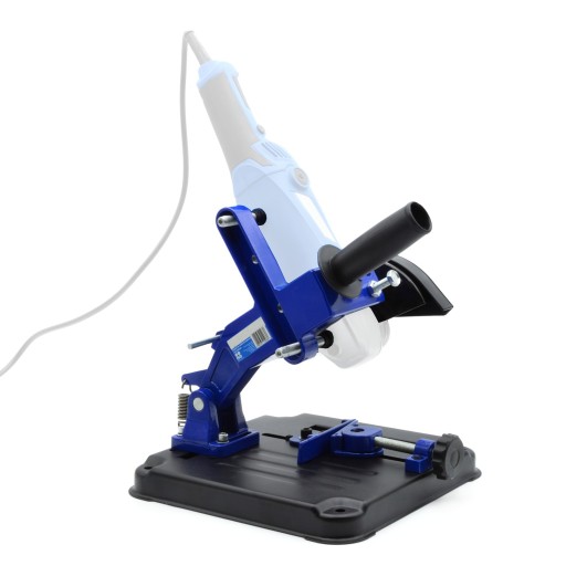 Stojak ma uniwersalne mocowanie do szlifierek jednoręcznych o średnicy tarczy 115-125mm. Przydatny w każdym warsztacie domowym, jak i rzemieślniczym.