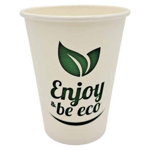 Enjoy&Be Eco Kubek papierowy PLASTIC FREE, 12 oz, 300 ml, biały z nadrukiem, a'50