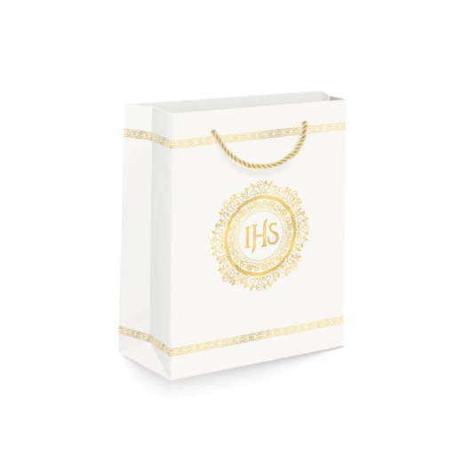 Torebka na prezenty komunijne IHS biało-złote mała - 1 SZTUKA MIX WZORÓW