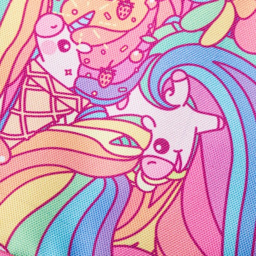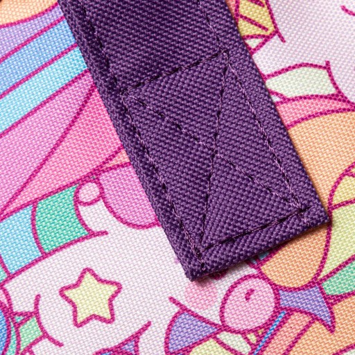 kolor paska naramiennego – drukowana tkanina w kolorowe jednorożce,